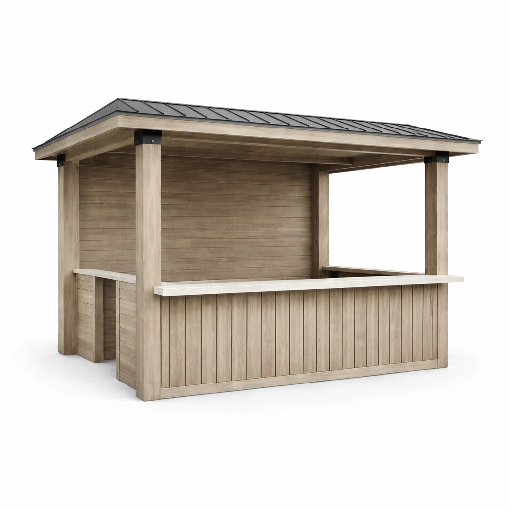 Bar de jardín de madera para exterior con techo de acero
