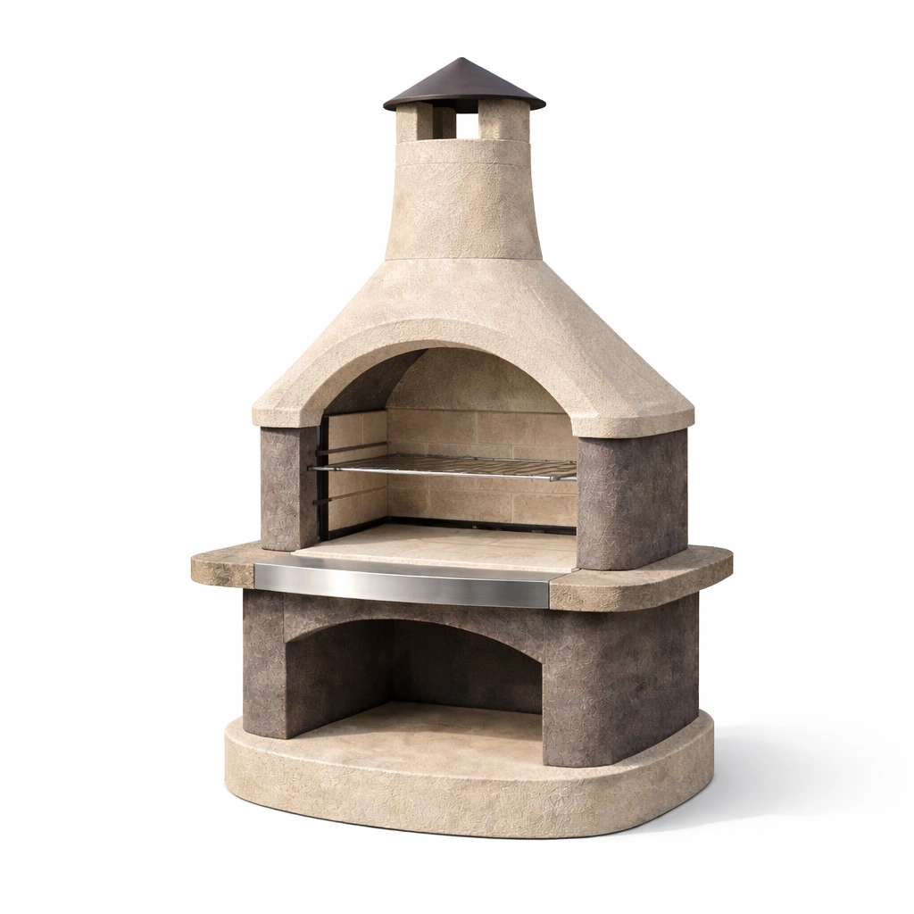 Barbacoa de concreto con acero inoxidable para exterior