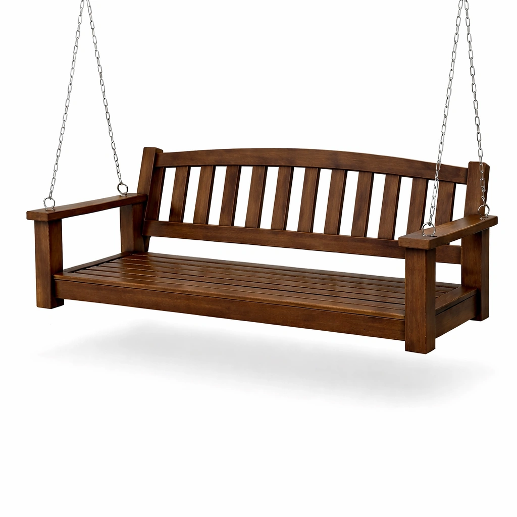 Columpio de porche de madera de acacia para exterior con cadenas de metal