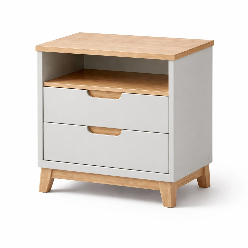 Mesita de noche de madera contrachapada roble claro y blanco