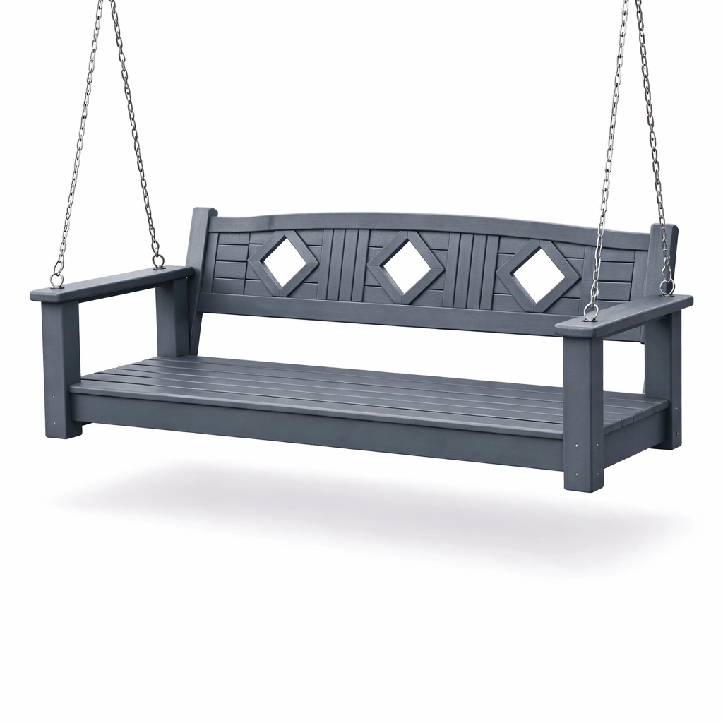 Este columpio de jardín está fabricado en madera maciza con una cadena de acero inoxidable para colgar. Su color Gris lo hace adecuado para uso exterior.